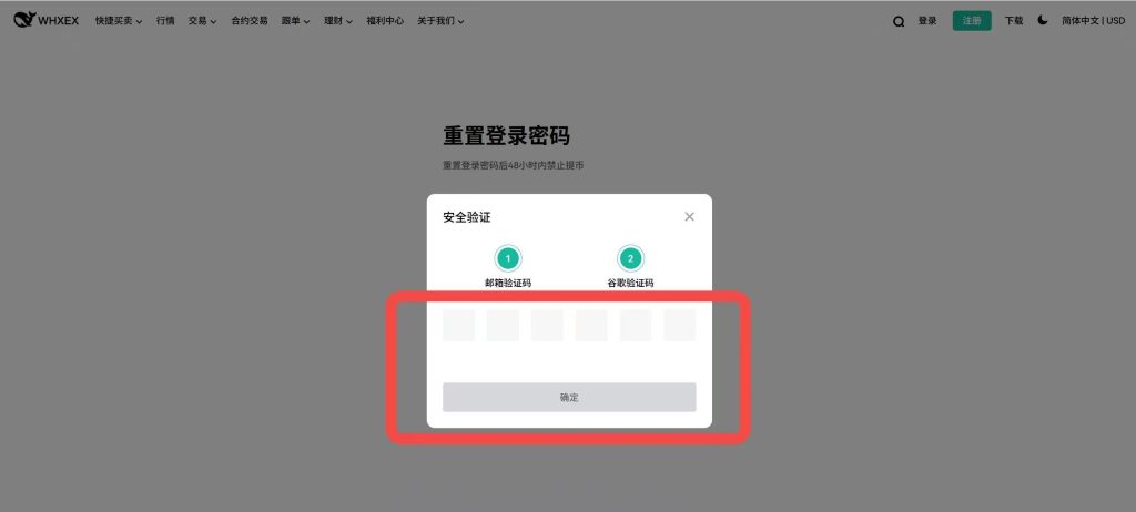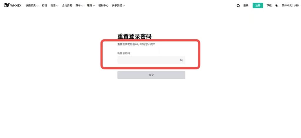 7.您的密码已成功修改。请使用新密码登录您的WHXEX账户