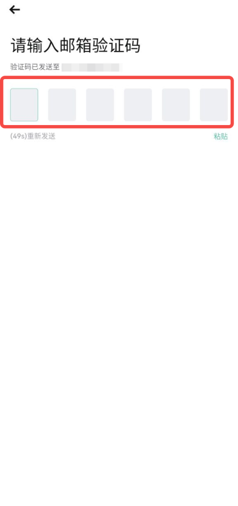 5.您将通过注册邮箱收到6位数的验证码。请在红框中【输入验证码】。如未收到请检查邮箱或重新发送验证码。