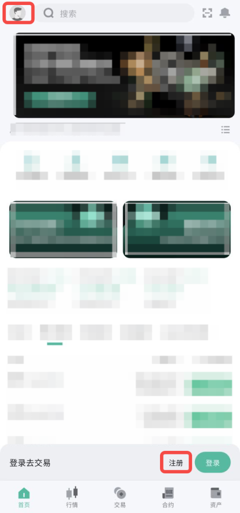1. 打开WHXEX App,点击左上角【头像】图标,或者直接点击主页下方的【注册】选项。